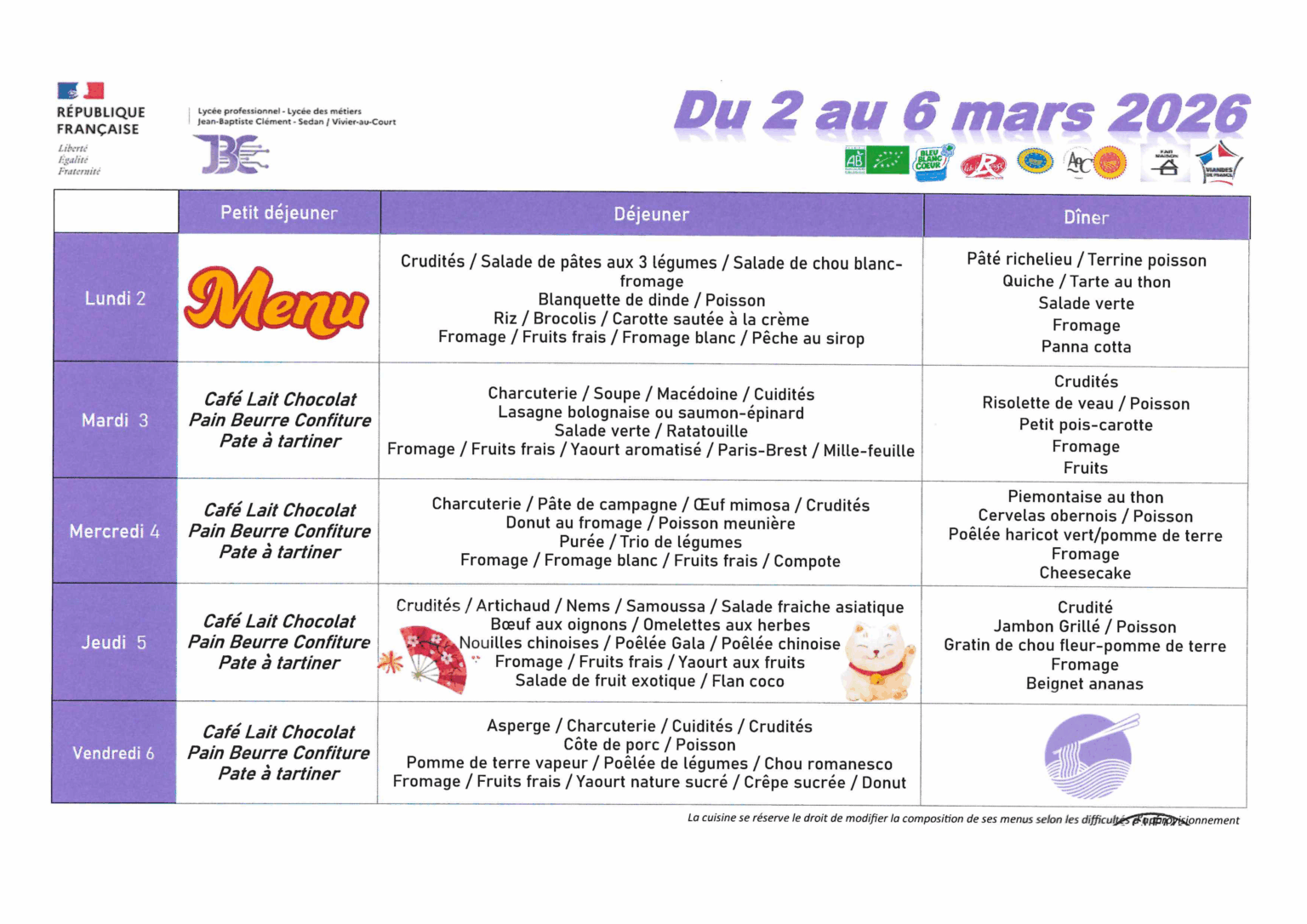 | Du 02 Mars au 14 Mars 2026 |